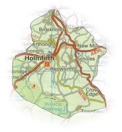 The map shows the area around Holmfirth, which we cover. Please ask our reception staff if you are unsure whether you live within our area.